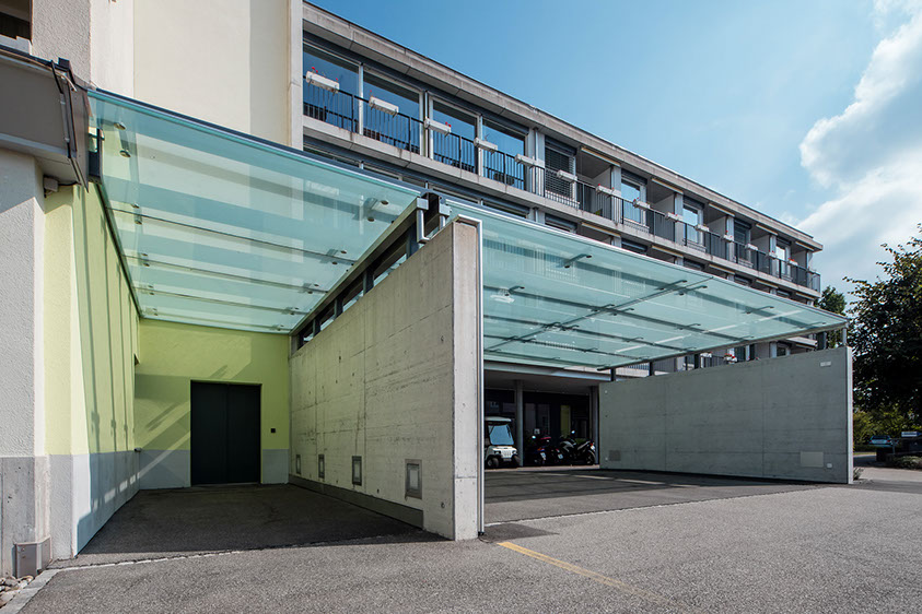 eingangsbereich, dachkonstruktion, verglasung
